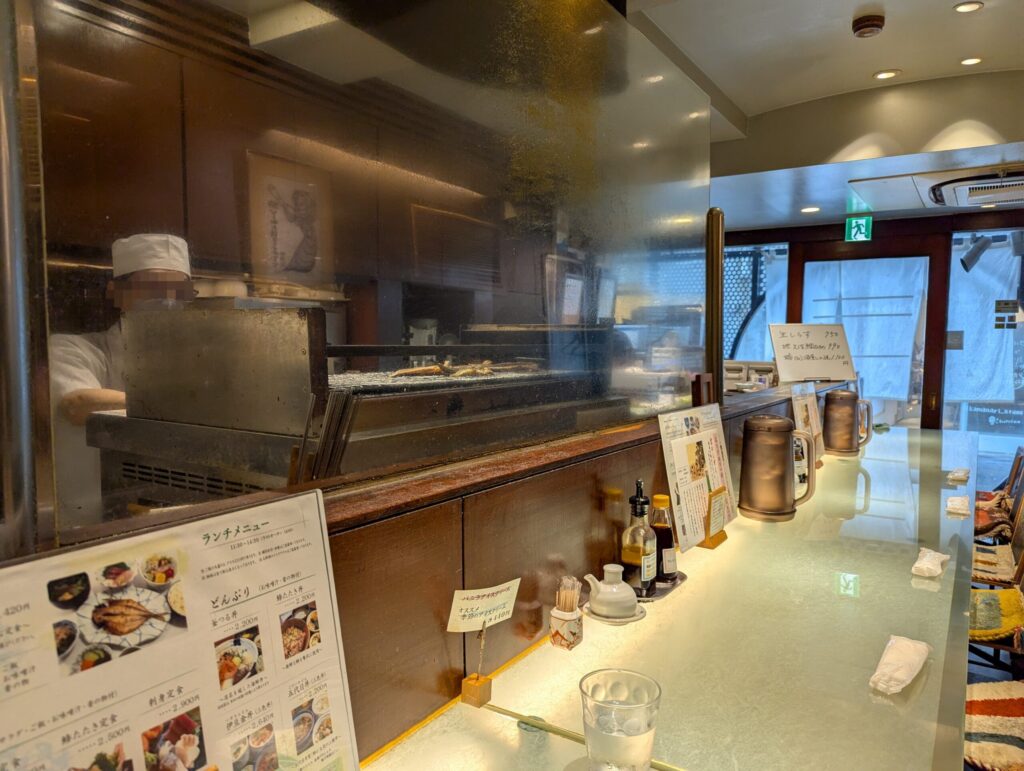 入店してまず良いなと思ったのが、カウンター越しに調理の空気が伝わるところ。目の前で干物が焼けていく香りって、反則級に食欲を刺激します…。しかも釜つるは、釜鶴本店で干物を選び、店内で焼いて食べられるスタイルもOKとのこと。干物屋さんの強みを、そのまま食体験に落とし込んでいる感じがします。